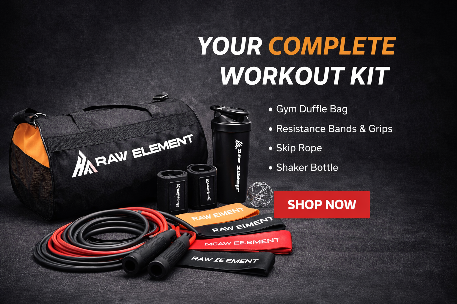 RAW Element Complete Fitness Kit with Gym Duffle Bag, Resistance Bands, Skipping Rope & Shaker Bottle